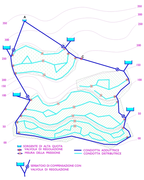 pressione ottimale di consegna all’utenza. Nella planimetria
