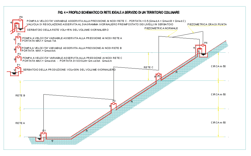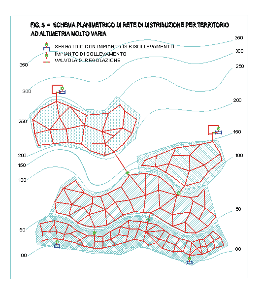 in tante fasce altimetriche omogenee allo scopo di contenere le pressioni