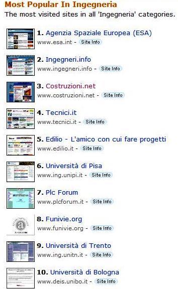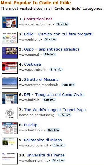 Di seguito è riportata la classifica italiana dei primi 10 siti più visitati nella categoria "ingegneria civile-edile".