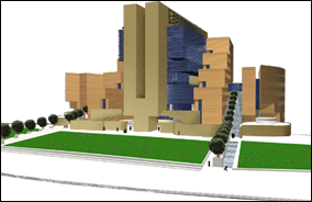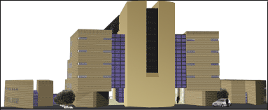 innalza per ben 10 piani; le due ali