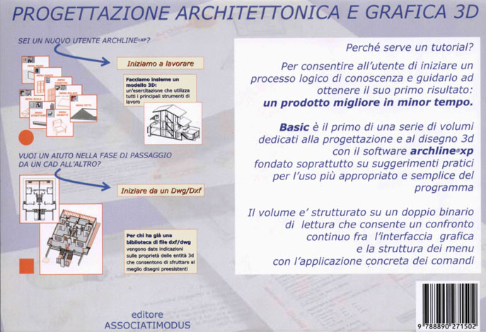 con l'applicazione concreta dei comandi. Sei un nuovo utente ARCHLINE? Vuoi aiuto nella fase di passaggio dal un CAD all'altro? Vuoi utilizzare al meglio le potenzialità ARCHILINE? ARCHLINE POINT TUTORIAL BASIC ti consentirà di: -realizzare un modello 3D, utilizzando tutti i principali strumenti di lavoro; -sfruttare al meglio disegni preesistenti; -approfondire tematiche specifiche. |
