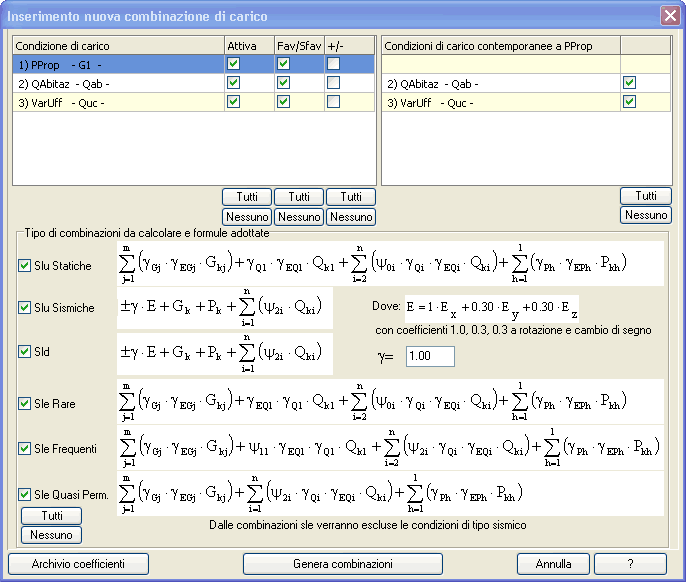 le combinazioni sismiche. Le formule