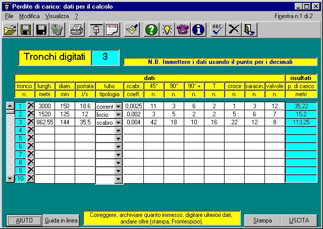 programma consente il calcolo delle perdite di carico nelle tubazioni