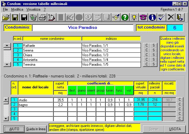 programma consente di costruire tabelle millesimali in base alla Circolare