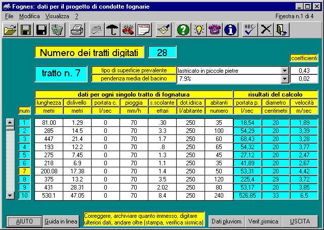 programma consente il calcolo fino a 500 tratti di rete fognante fornendo