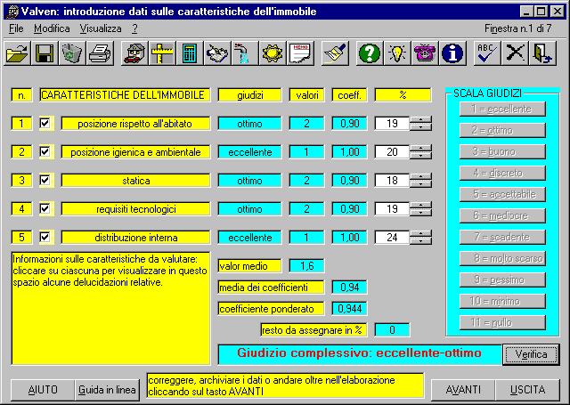 correzioni per affinare la stima. Una finestra descrive in automatico il fabbricato in base ai giudizi di stima immessi: si potranno così controllare ulteriormente i dati ed i risultati oppure anche partire dalle centinaia di migliaia di combinazioni di frasi possibili (che compongono la descrizione) per scegliere a ritroso i giudizi più corrispondenti. |