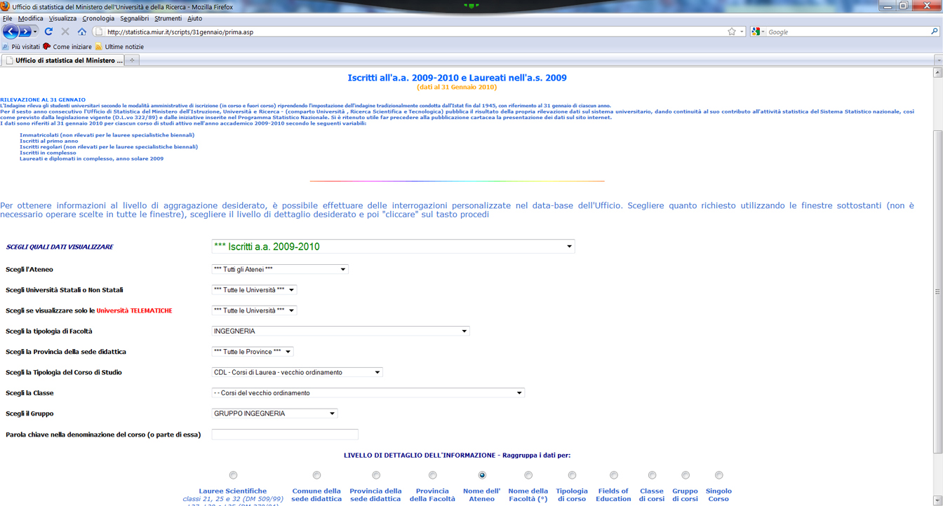 facilmente reperibili i dati numerici al 31.01.2010 riguardanti