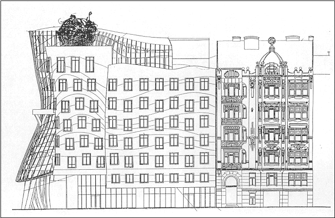 Gehry ha cercato di relazionarsi con gli edifici circostanti ma